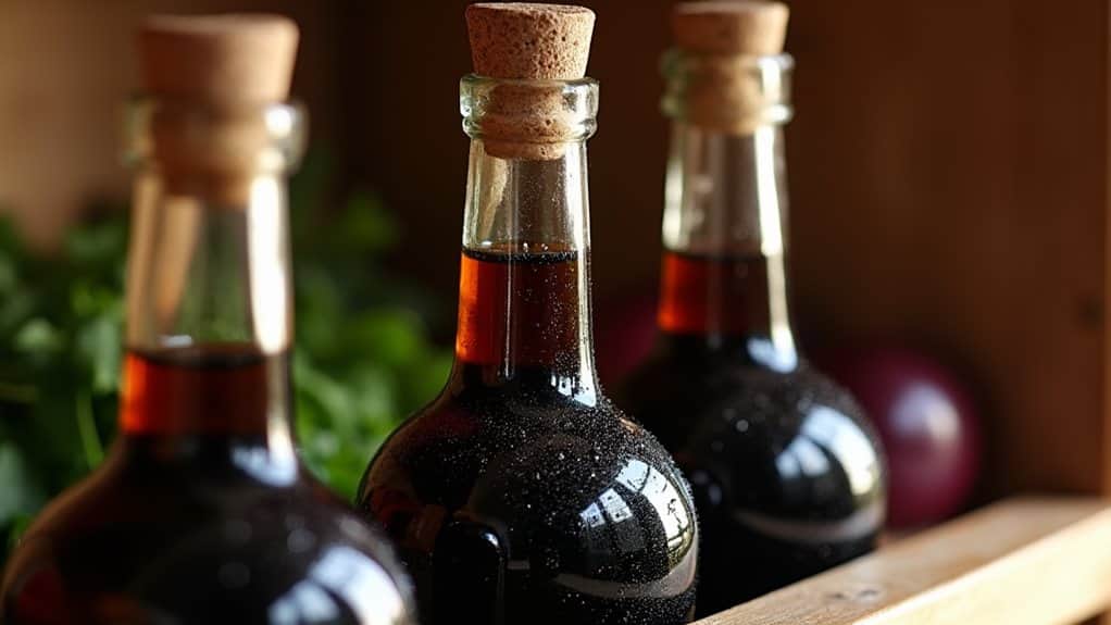 Proper storage of balsamic vinegar can stretch its shelf life out to several years or even decades, depending on the quality and type you've purchased. You'll find that high-quality varieties maintain their characteristics longer due to higher acid content, while commercial grades should be used within two to three years. While "best by" dates indicate peak quality, your vinegar remains safe beyond this timeframe if stored correctly. Storing in a cool, dark place helps preserve the vinegar's integrity and prevents premature deterioration. Additionally, exposure to air and light can lead to changes in flavor and quality over time.