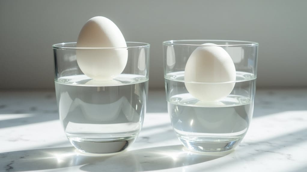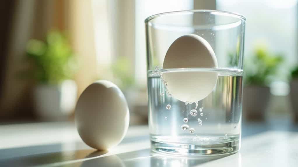 Yes, eggs can go bad, but you've got several reliable ways to check their freshness. The most effective method is the float test: place an egg in cold water – fresh eggs sink and lie flat, while older eggs float due to growing air pockets. Fresh eggs also have firm whites, clear yolks, and shells that are clean and crack-free without any unusual odors. Properly refrigerated eggs typically last 4-5 weeks past their pack date when stored below 40°F. For ideal safety, keep them in their original carton, avoid storing in the door, and check for cracks before use. There's much more to know about extending your eggs' shelf life.