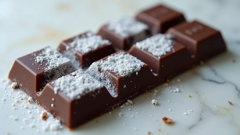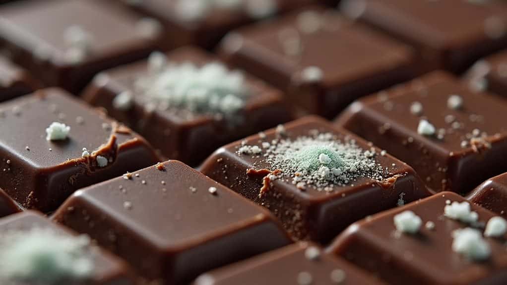 You'll get the most enjoyment and value from your chocolate by storing it properly and checking regularly for signs of spoilage. Keep your chocolate in a cool, dry place between 65-70°F, away from direct sunlight and strong odors. When you notice white bloom, off-putting smells, or unusual textures, it's time to say goodbye. With proper care and storage, you'll guarantee your chocolate stays fresh and delicious for months to come.