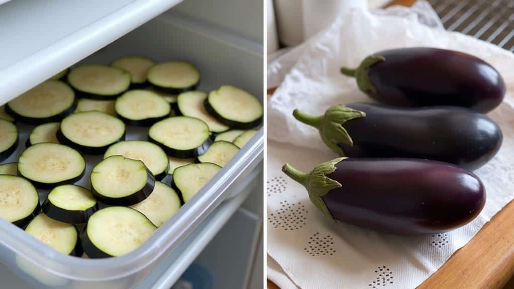 For ideal freshness, it’s essential to understand eggplant’s shelf life in various storage conditions. Whole eggplants can last 4-5 days at room temperature or 2-3 weeks when stored properly in the refrigerator.