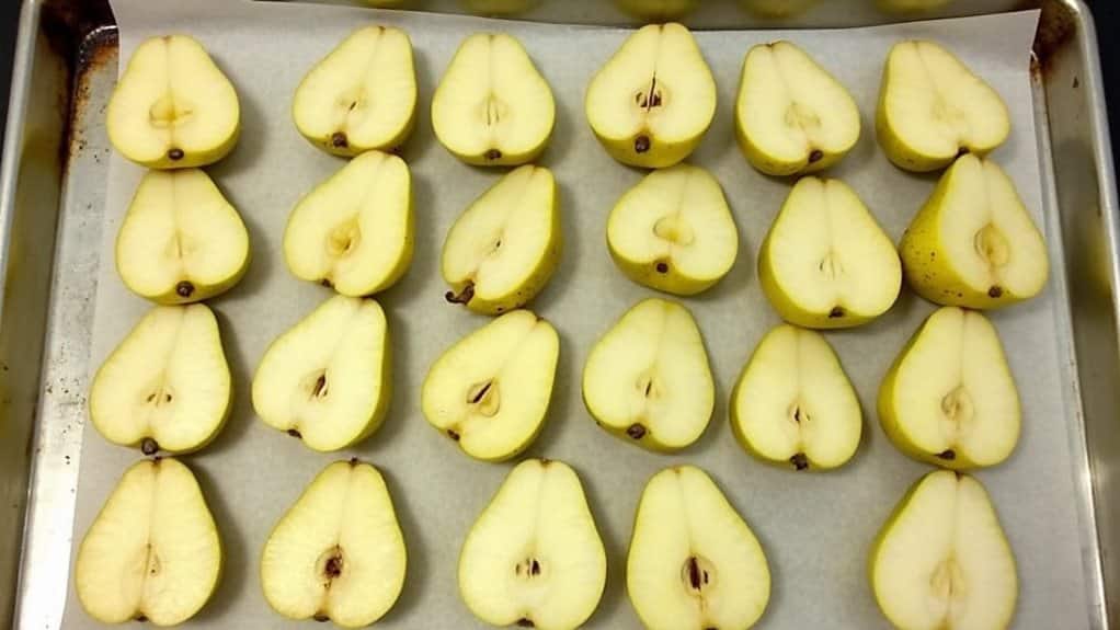 Pat the pieces dry with paper towels before arranging them on a lined baking sheet. Additionally, consider storing your pears in optimal conditions to preserve their quality during freezing.